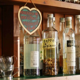 bevande calde e fredde, torte fatte in casa, panini da asporto, birre artigianali, grappe particolari...